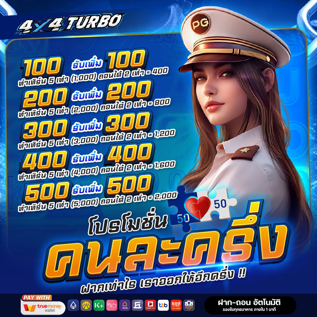 - ทำยอดเทิร์น 5 เท่า (4,000) สามารถถอนได้ทันที